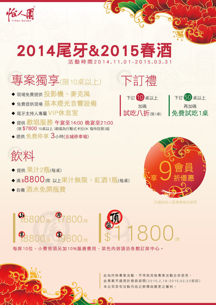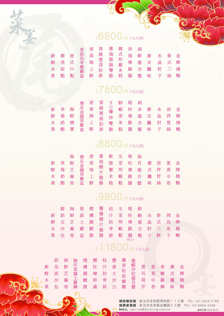 預算方面,每桌NT$6800起,要吃飯店等級也難不倒我們,