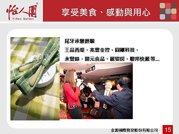 A3:怡人園已經在永和地區成立40年嚕!師傅們的工夫好的沒話說,個個都是一把好手,但是對於自助餐的經驗較少,設備也都是為了中式合菜準備的喔!為了讓客人都可以吃到原味呈現的菜色,所以要對有自助餐需求的客人說聲抱歉了!