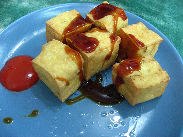 再來是滋味嘉牆壁上貼的超大廣告, 說是超好吃的炸豆腐 NTD25, 口感當然是外酥內軟, 熱熱的端上桌是很ㄙㄨㄚˇ嘴, 街邊小吃囉~ 還算推薦!!!