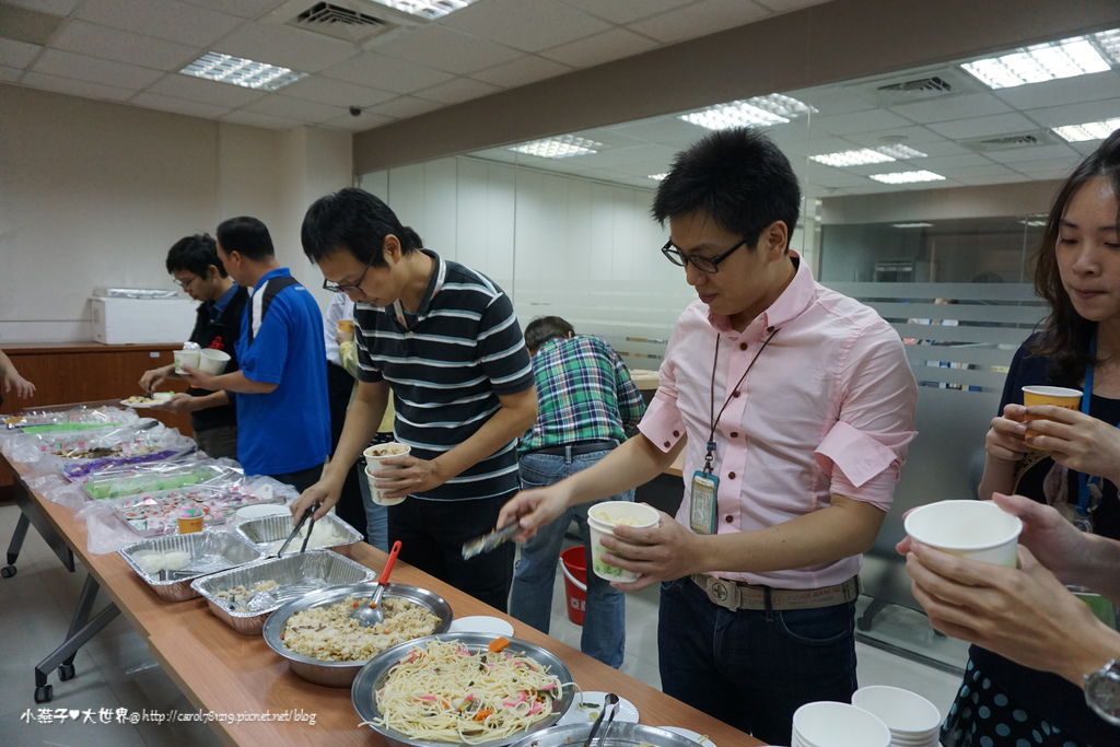 我們有事先跟廠商說請幫我們分為兩層送貨(我有給廠商各層每樣東西需要的數量),公司還有一個檢驗所在大安,那邊只有三個人,以前其他活動是請他們三個人自己另外買東西,另開發票,不過好萊老闆人很好,幫我們另外送三份餐點過去大安區!超貼心~~~
