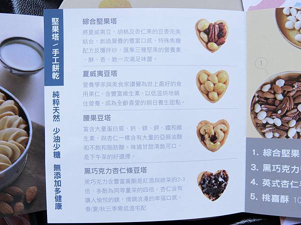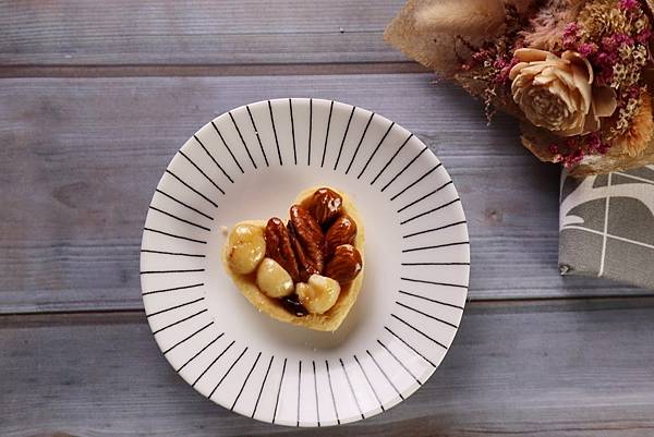 堅果塔設計上很有巧思,是做成愛心形狀的!他們堅果口味蠻多種的,所以我全部選擇綜合堅果塔,一顆堅果塔就可以吃到所有的堅果,覺得cp值超高阿!