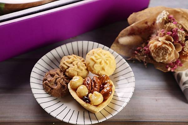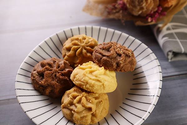 再來是也很厲害的曲奇餅,綜合口味的一共有三個口味,原味、黑巧克力、海鹽咖啡,不管堅果塔還曲奇餅都選了綜合口味,一個禮盒就多種口味一次滿足啊,哈哈!