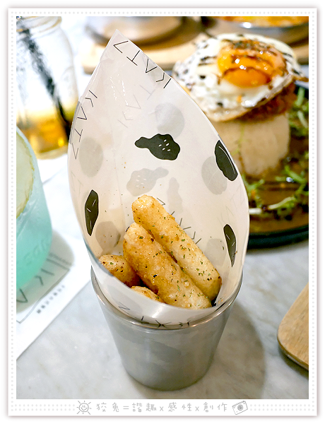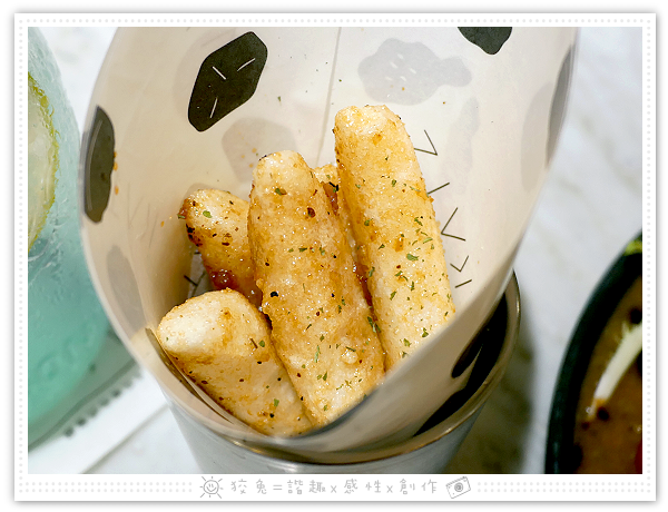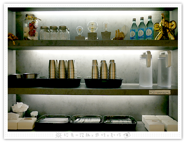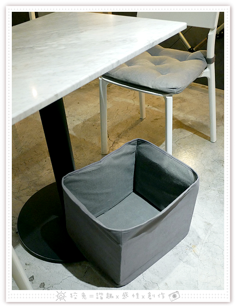 各桌旁皆貼心備有置物籃!狡兔把哩哩叩叩的隨身物品都丟進去!話說我那天還心血來潮帶了輔助攝影的打光工具,但我還是沒勇氣拿出來用......(傻笑)