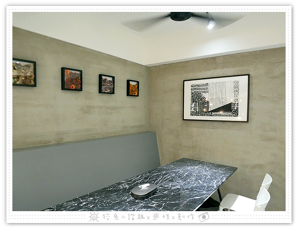 左側區塊轉換了風格,不矯飾的水泥地板及牆面,點綴著裝飾掛件,我也青睞這樣的簡單和清爽!