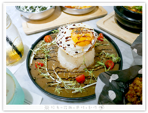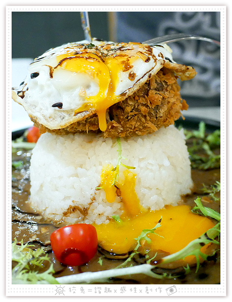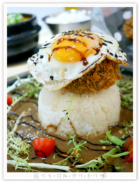 飯、肉、蛋被堆疊得好高呀!我想,店員將它安全護送上桌前,應該是屏氣凝神,壓力不小吧?XD