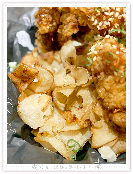 底下墊著許多手工薯片!咬下去卡滋卡滋的,薄款非常酥脆!表現優秀的配角!