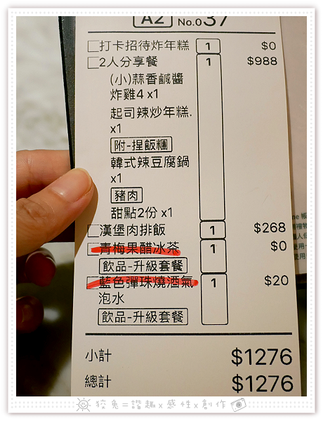 此外,為避免遺珠之憾,還單點一份268元的漢堡肉排飯!填妥菜單再到櫃台點餐結帳,出餐速度極快!